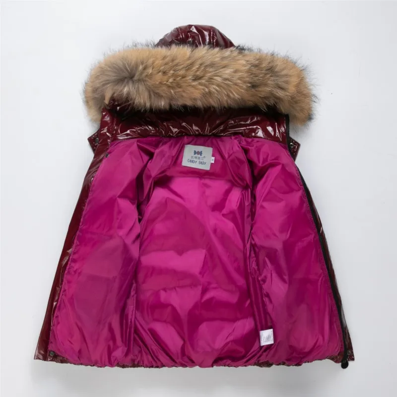 2025 Children Boy Winter Down Jacket Real Fur Waterproof Shiny Girl Winter Coat 1-14 Year Kids Teenager Outerwear Toddler Outfit